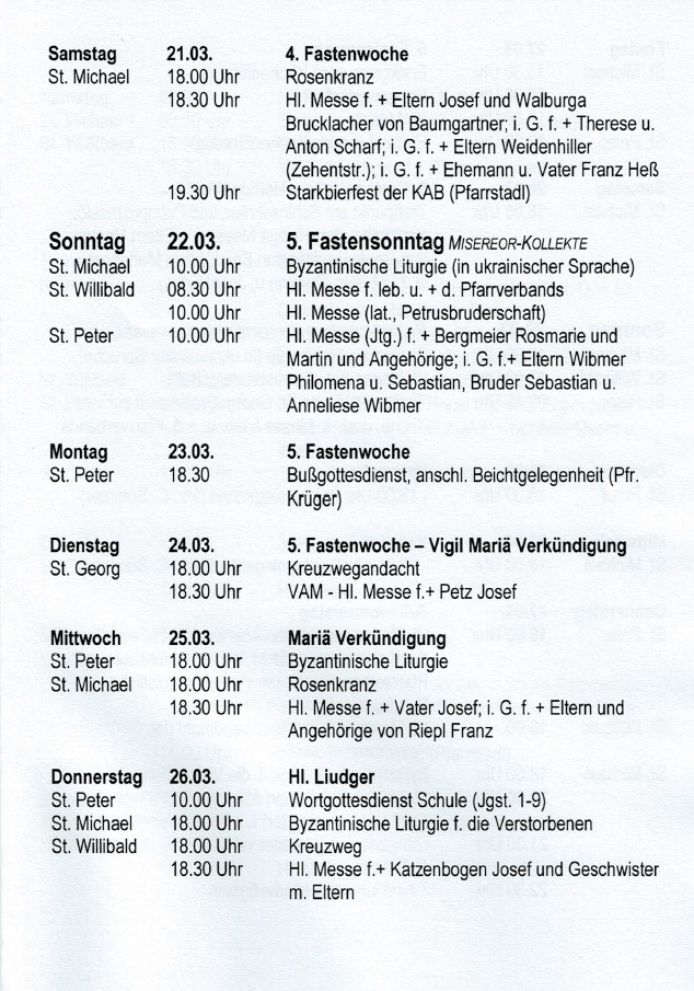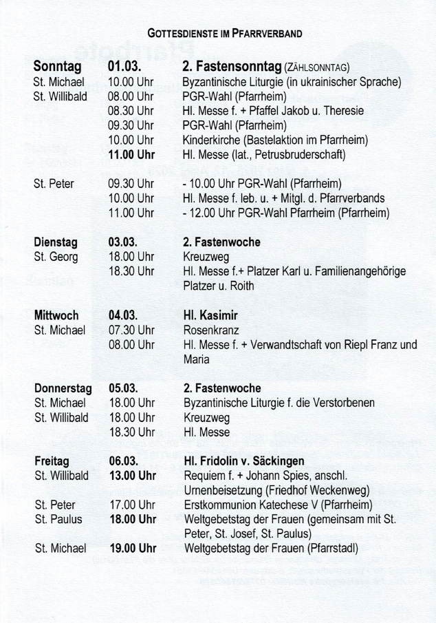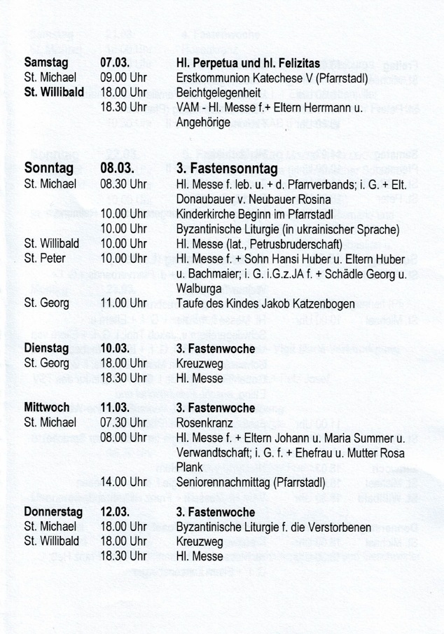 St. Willibald | Sonntag, 1.3. | 8:00 Uhr |