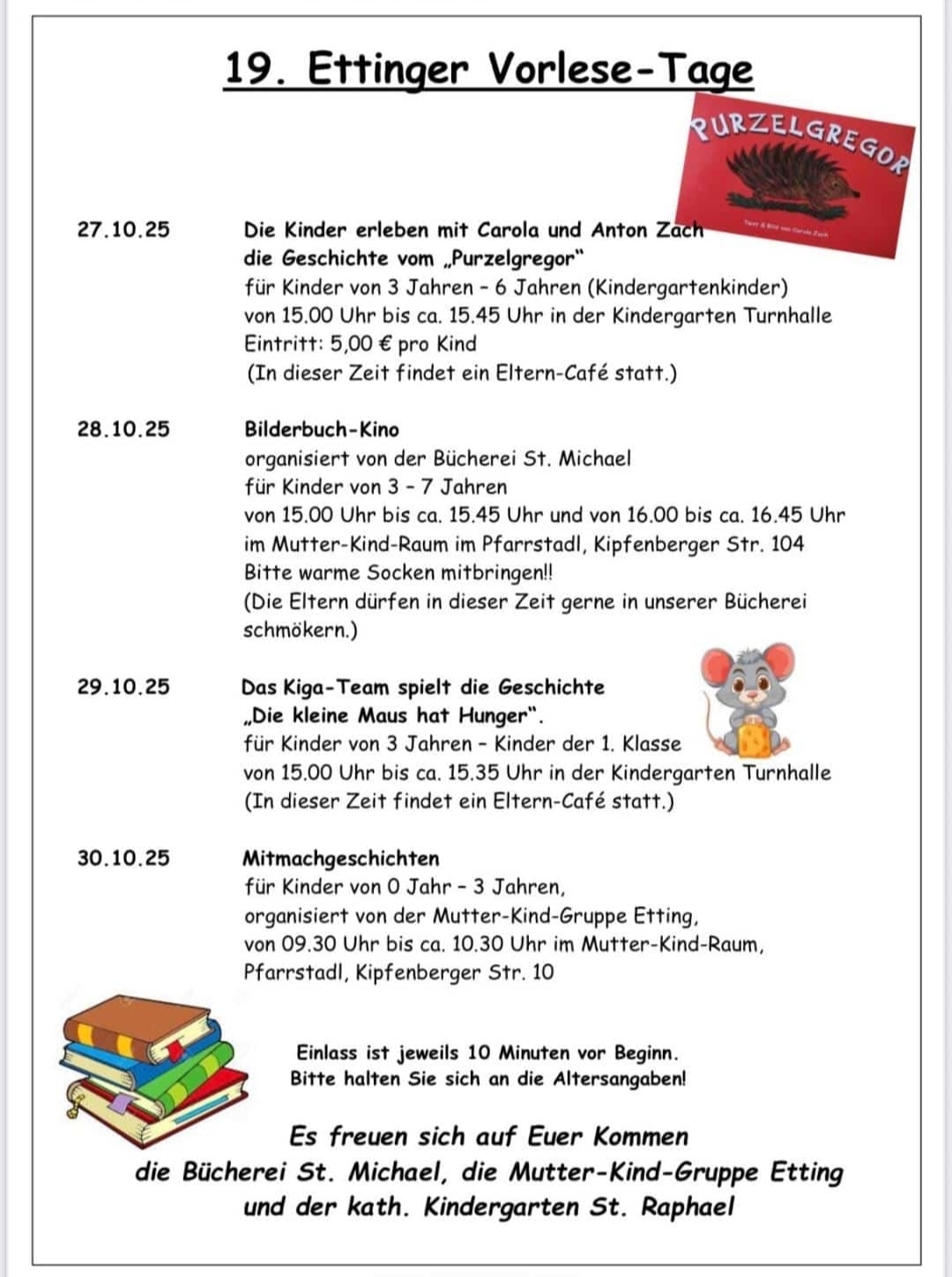 Bücherei: 27.-30.10.2025 Vorlesetage