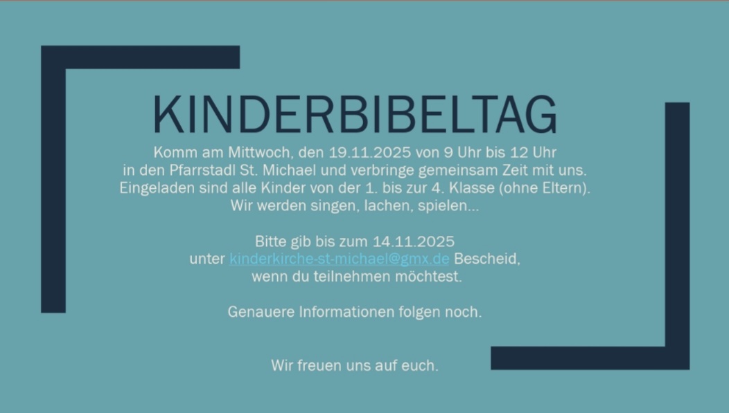 Kinder-Bibeltag: 19.11.2025 um 9:00 Uhr im Pfarrstadl