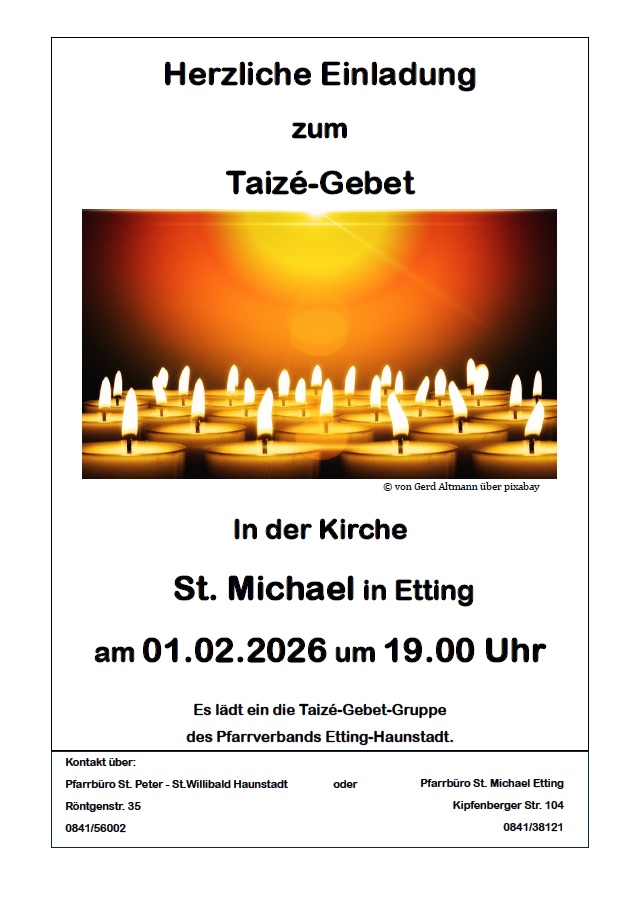 Taizé-Gebet: 01.02.2026 um 19:00 Uhr in der Kirche St. Michael Etting